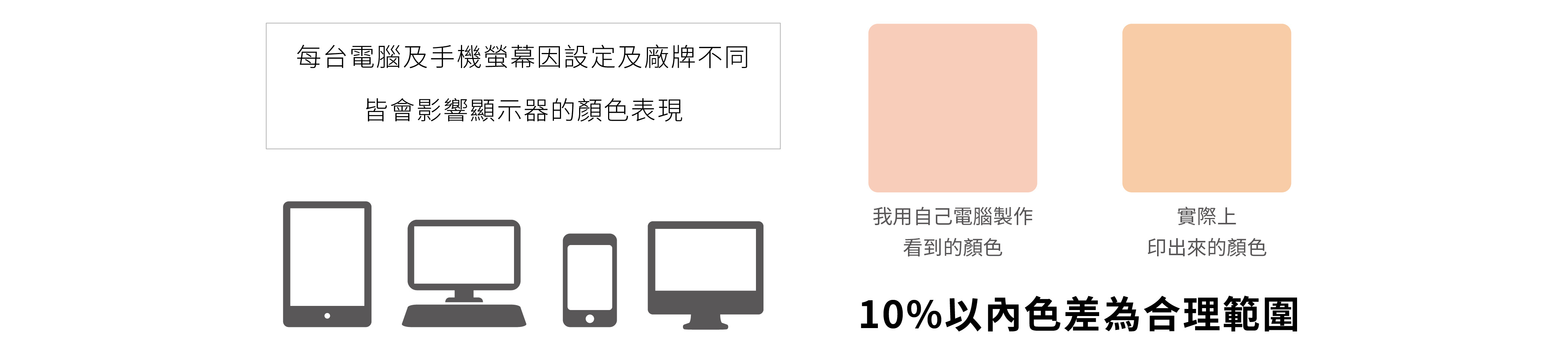 (4)第二次下單,印刷因紙張物理特性及空氣溫溼度皆會有色差問題,請勿以「上次印刷品顏色」為標準做退貨理由