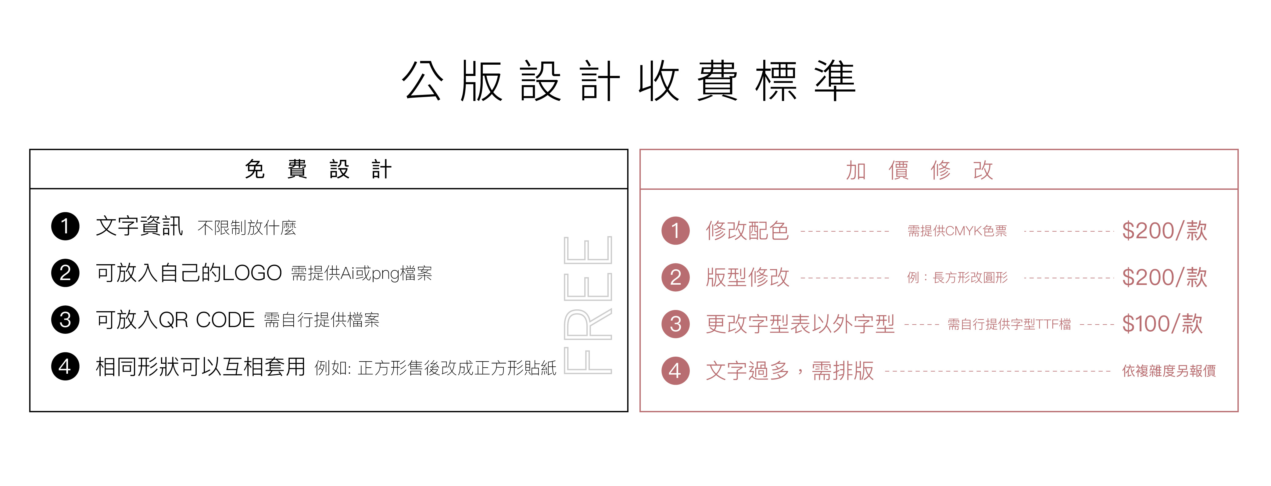 (3)排稿後可免費小幅修改2次(如超過需收修改費$50)